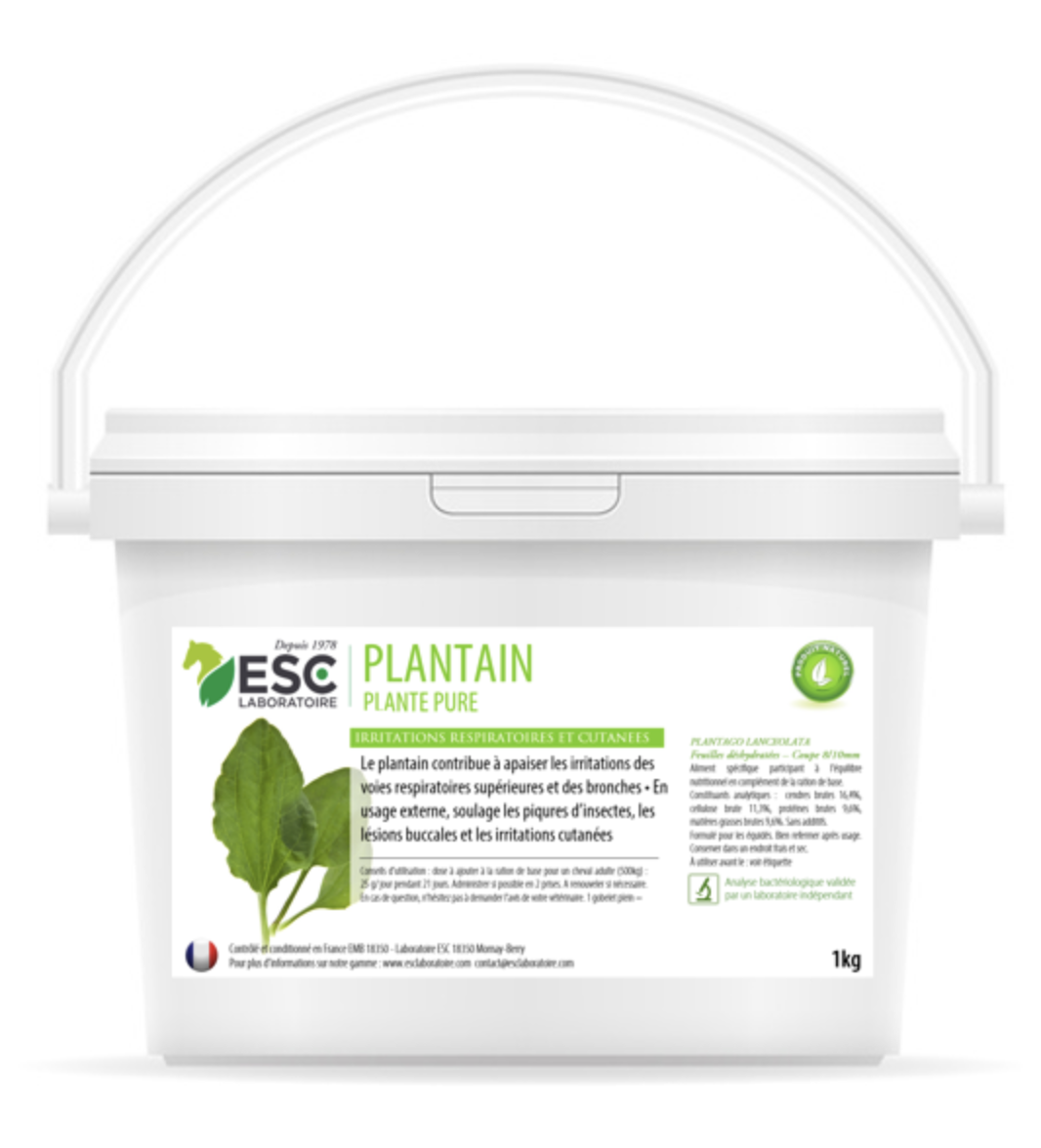 Accueil > Chevaux > Hygiène & Soins > Hygiène respiratoire > ESC LABORATOIRE - Plantain, respiration et irritations cutanées plante pure